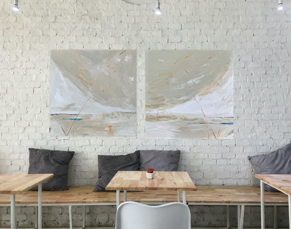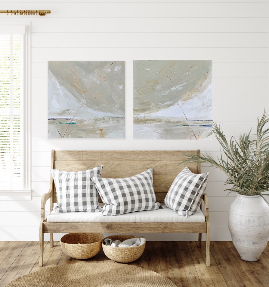 SOLD “Over The Moon” Diptych 24″ x 24″