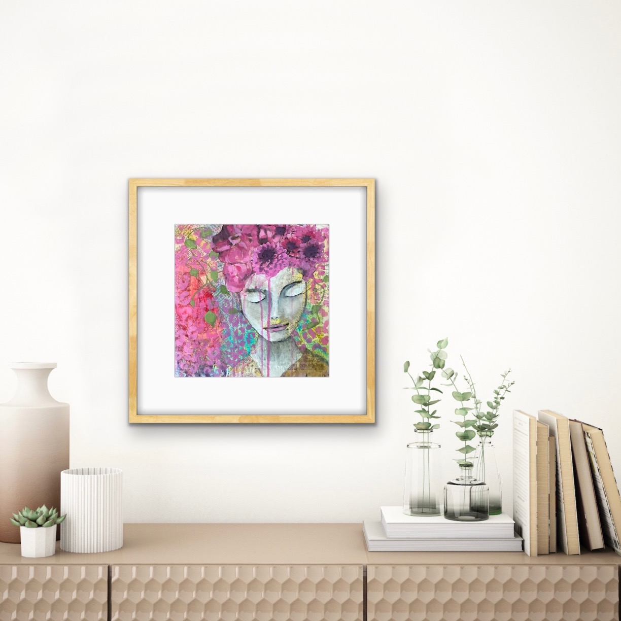 The use of mixed media allows for a combination of different materials such as acrylic paint, watercolours, pencil or ink creating a visually unique piece of art.